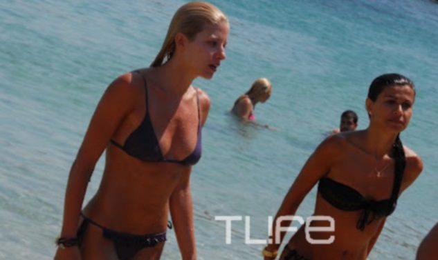 Ο φωτογραφικός φακός συνάντησε την Ευαγγελία και την Νεσχάν να κάνουν το μπάνιο τους σε μία από τις κοσμοπολίτικες παραλίες.