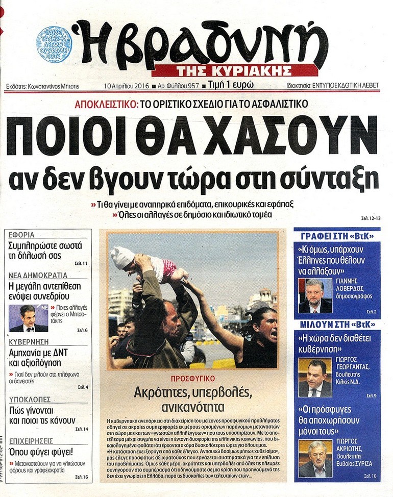 Τα πρωτοσέλιδα των Κυριακάτικων εφημερίδων 10 Απριλίου 2016